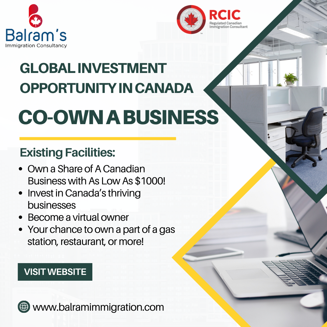 Are you ready to embark on a unique and exciting journey towards financial growth and global business ownership? Look no further! Balram's Immigration Consultancy invites you to be a part of an innovative investment opportunity that allows you to own a share of businesses in Canada, one of the world's most thriving economies.